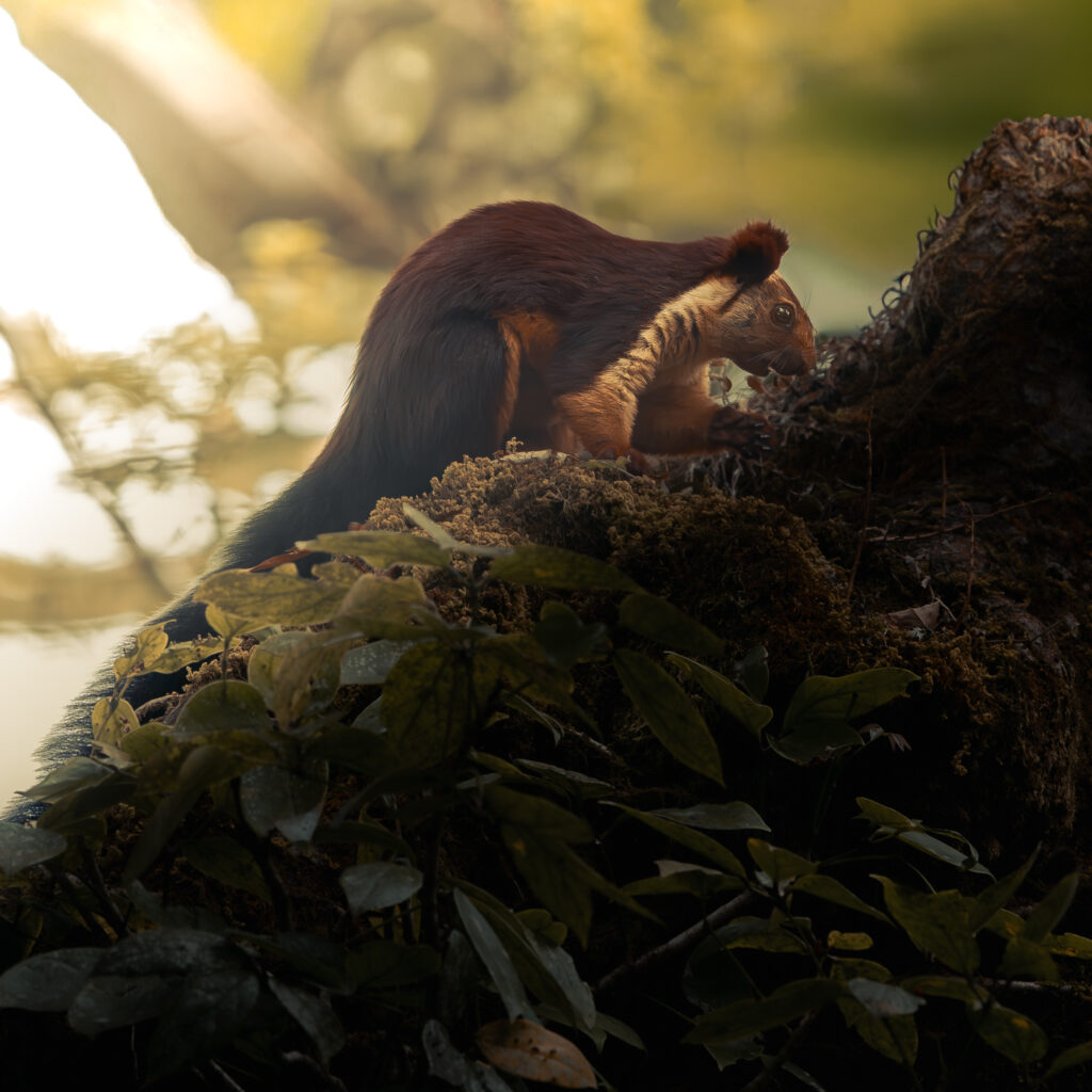 I slightly deepened the greens and reduced the highlights to preserve the calm and mysterious tone of the forest. This also helped the squirrel’s rich chestnut fur stand out naturally from the darker background.